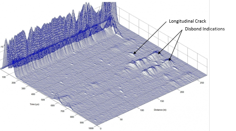 Because magnetic flux leakage is only exhibited in conductive materials, MFL pigs will not be able to detect polymer coating disbondment. MFL pig tools will have to incorporate a different technology in order to obtain pre-corrosion coating disbondment detection capabilities. Non-contact, EMAT generated guided wave ultrasound is a promising technology for the detection of coating disbondments. Guidedwave has developed a patented technology that uses circumferential guided waves to detect coating disbonds in pipelines with EMAT transducers that are fitted to an MFL pig tool. The system excites guided waves that are intentionally sensitive to the coating being adhered to the outer surface of the pipe to detect disbondment. This technology has also been proven to detect longitudinal cracks, which can be difficult to detect with MFL tools.