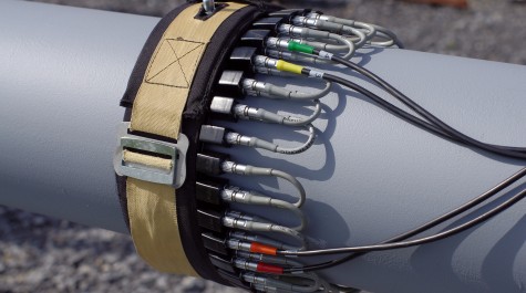UltraWave piezoelectric pipe inspection collars are designed to be used in conjunction with the UltraWave LRT acquisition unit and software. These collars offer a low-profile, lightweight, ruggedized option for low-frequency, long-range pipe inspection with torsional guided waves. They have an operating frequency range of 15 to 85 kHz and are available in standard pipe sizes from 2″ to 36″ with custom options available for any pipe size.