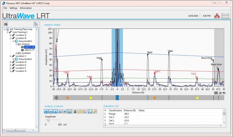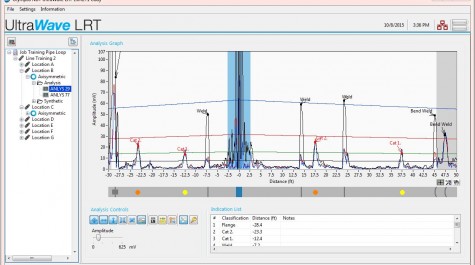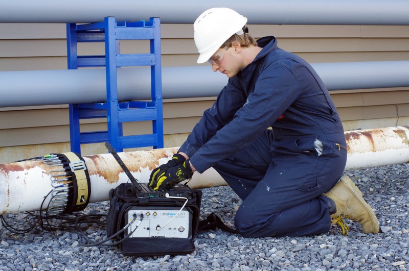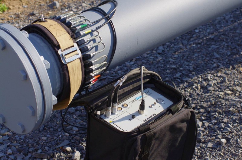 Guidedwave is proud to endorse the UltraWave LRT system offered by Olympus. The UltraWave LRT guided wave technology uses low-frequency guided waves to inspect hundreds of feet of pipe from a single location. The system is capable of detecting any change in wall thickness and providing information regarding the circumferential extent via focusing. The system consists of a collar that is placed on the pipe temporarily, a pulser/receiver unit, and software. The system is capable of inspecting pipes that are buried or coated. To view a product demo video please click here.